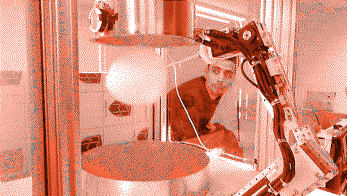 An autonomous system with a robot arm to make and serve cotton candy.